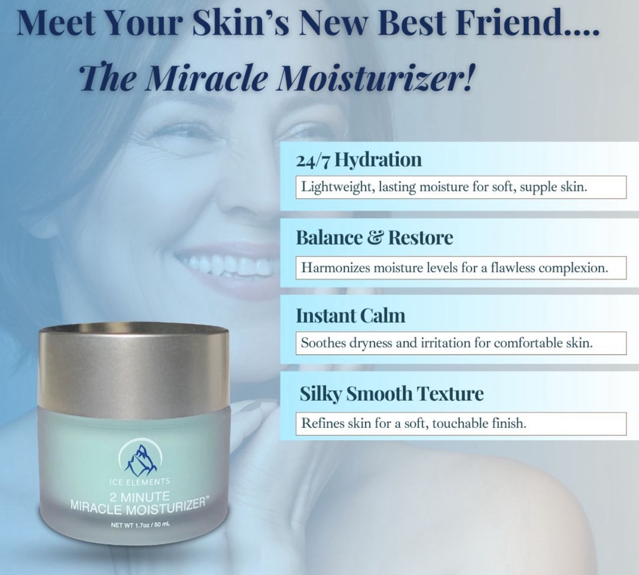 This unique light textured formula offers lasting hydration around the clock. Our unique combination of powerhouse ingredients such as shea butter, jojoba oil, micro algae and botanical extracts help smooth, soothe and soften skin instantly! Our exclusive Tri-Moisture Cryo Complex™ moisturizes dry, stressed and sensitive skin leaving your complexion plump, dewey and hydrated! Ideal for all skin types including sensitive, mature and blemish-prone skin.